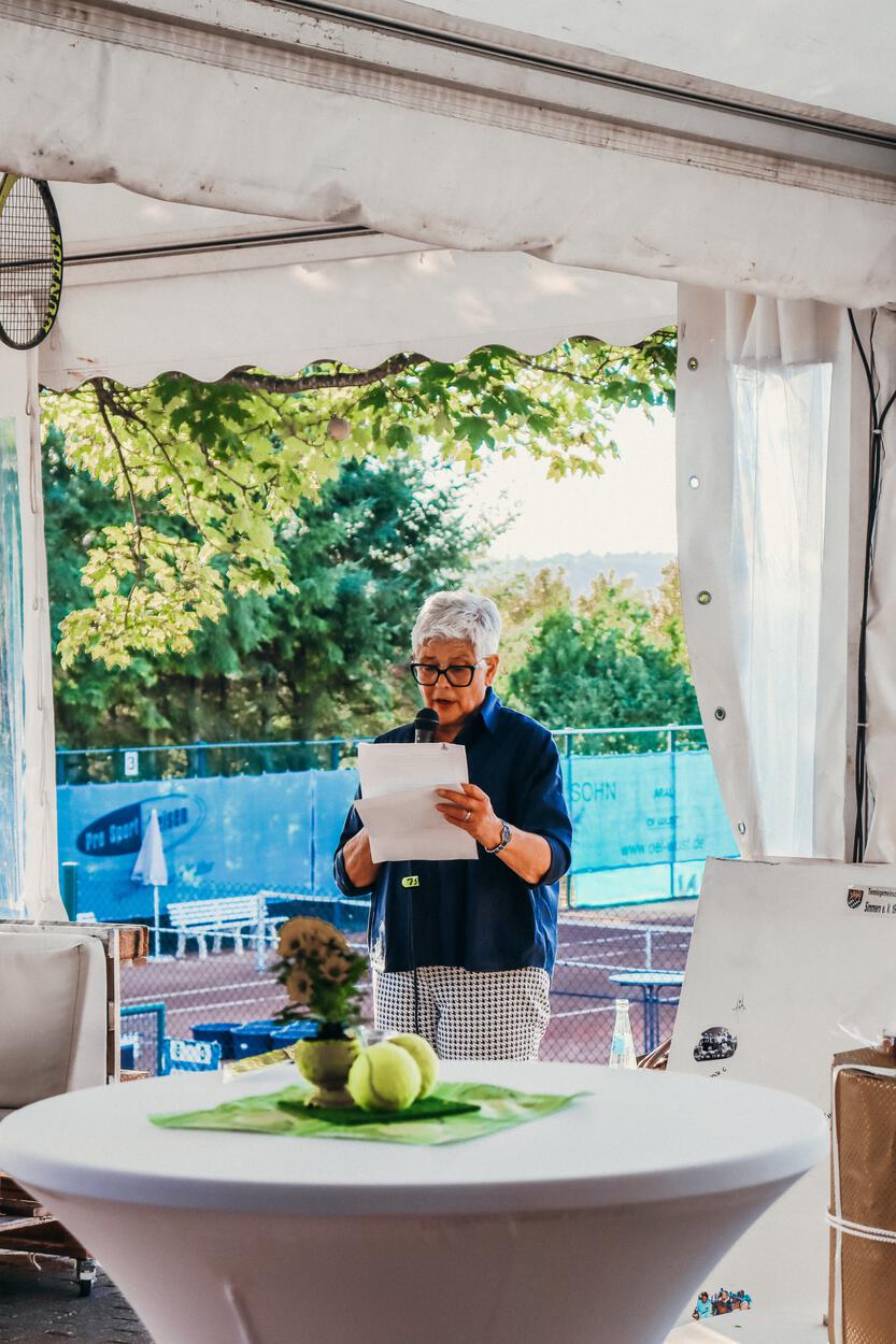 Nach den Spielen richtete unsere Vorstandsvorsitzende Heidi Hoffmann eine feierliche Rede an die Gäste. Sie blickte zurück auf die Gründung des Vereins, hob zwei besondere Jubiläen hervor und bedankte sich herzlich bei allen, die den Verein in der Vergangenheit wie auch aktuell tatkräftig unterstützen.